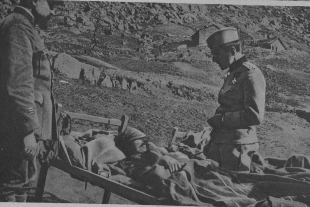 Regent Aleksandar Karađorđević obilazi ranjenike na Solunskom frontu, 1917. (Foto: Wikimedia commons/G.Garitan – Le Miroir/Public domain)